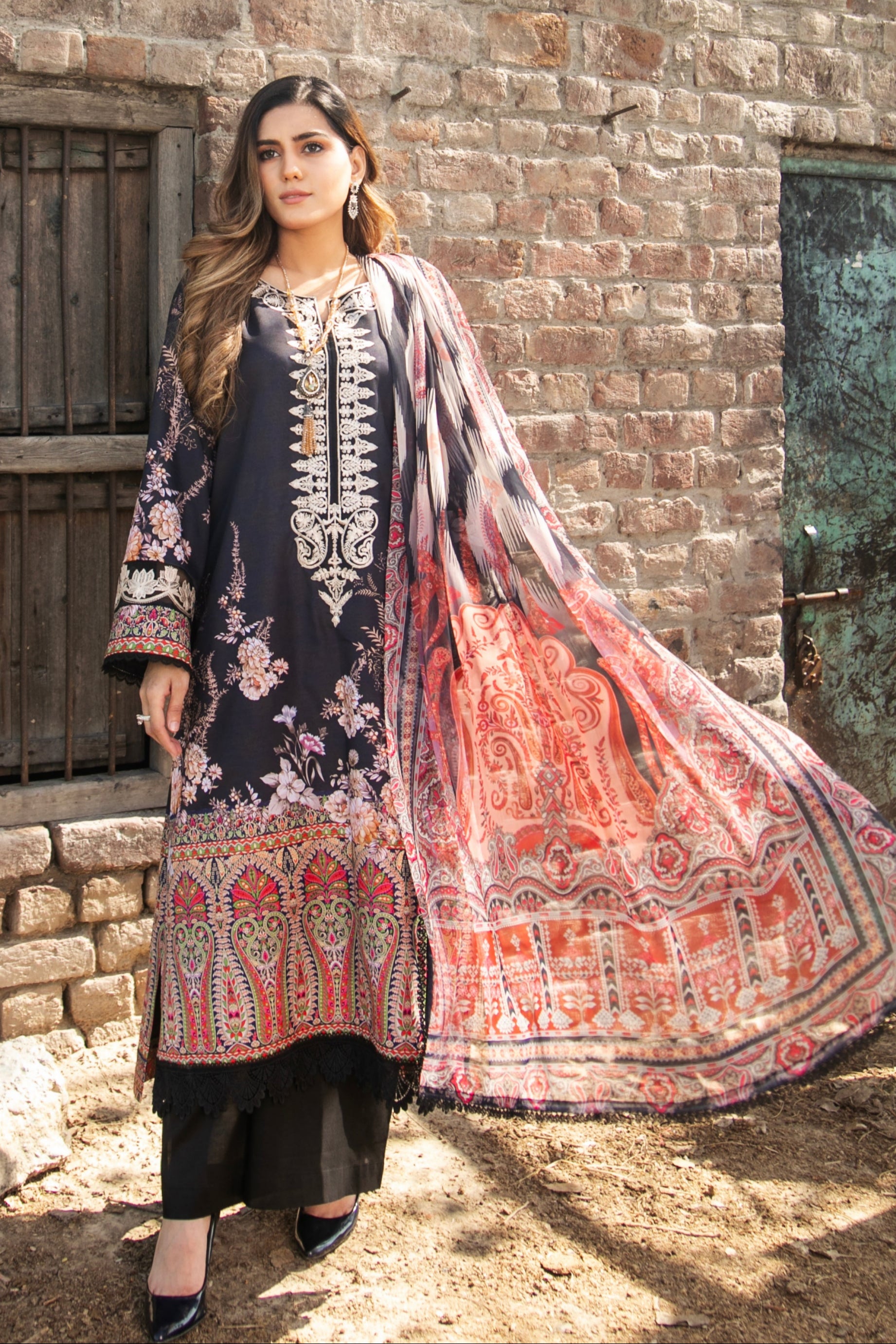 This elegant 3-piece dress from the CHANDAN NAGRI collection is a perfect choice to make your Eid celebrations unforgettable. The shirt, with its intricate printed and embroidered details, exudes sophistication and grace. Paired with a beautifully printed chiffon dupatta, this ensemble adds a touch of class while offering a fresh, summery feel perfect for the occasion.